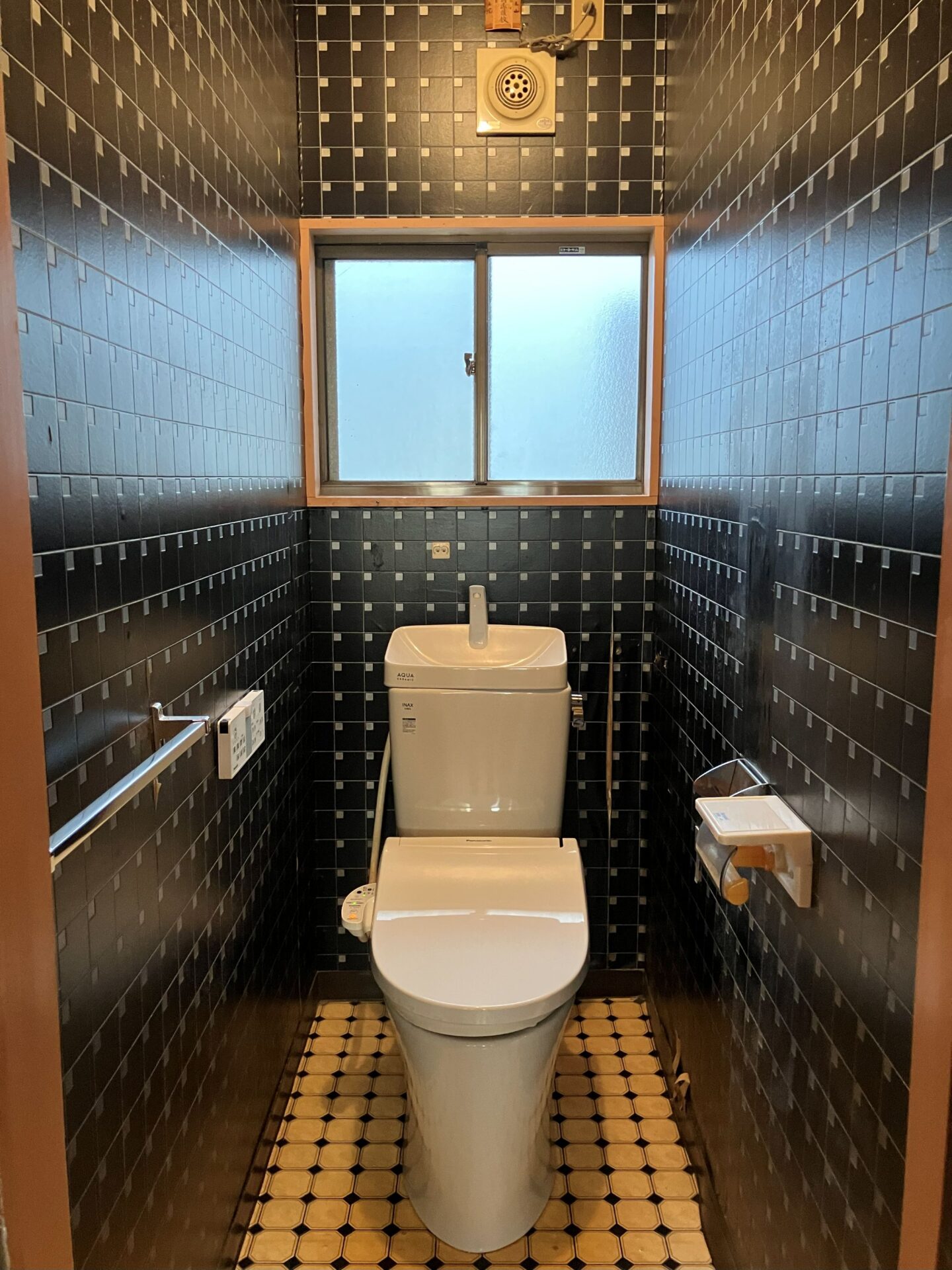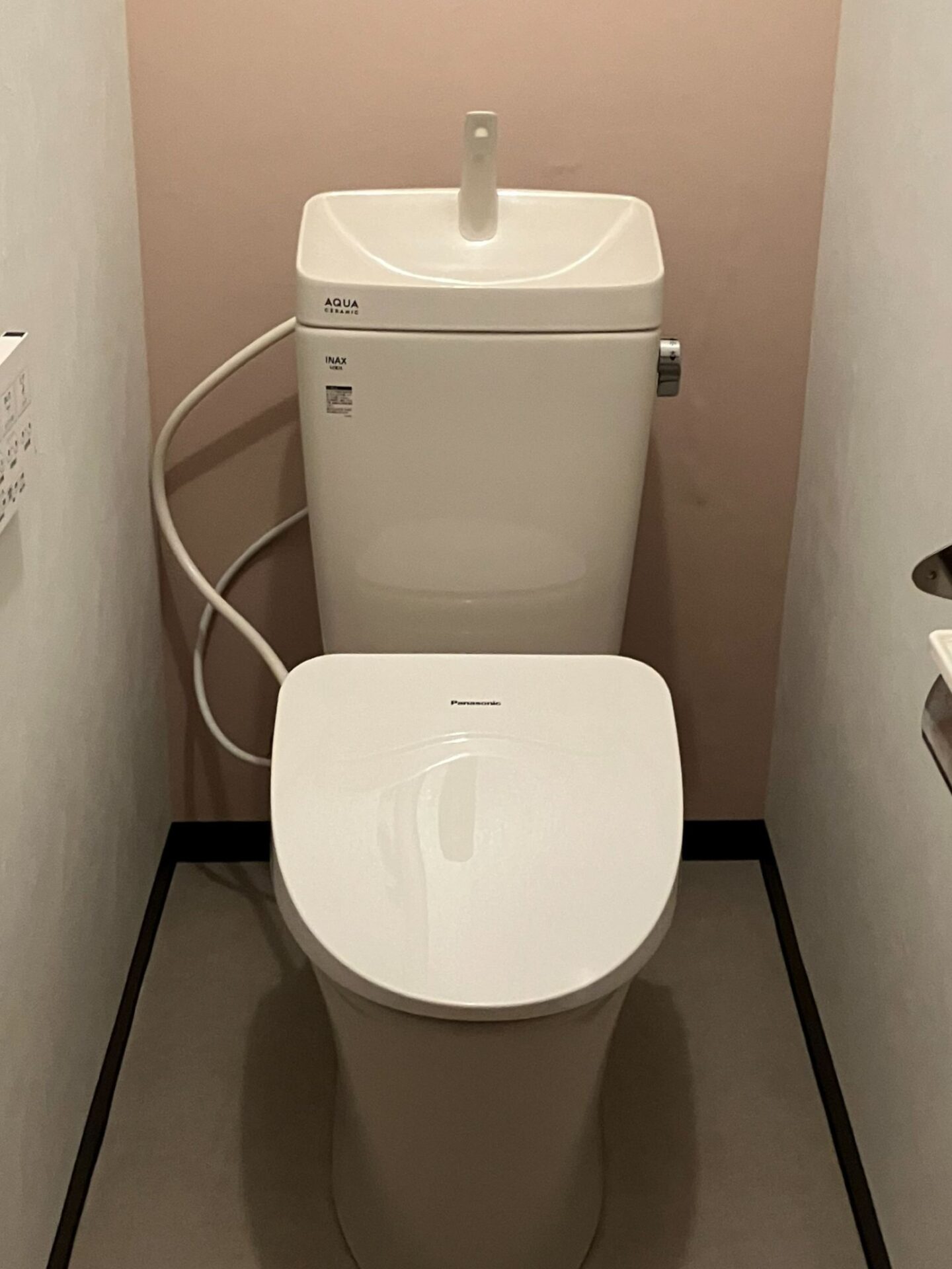 便座の交換と壁、床、天井のクロス貼り換えを行いました。
